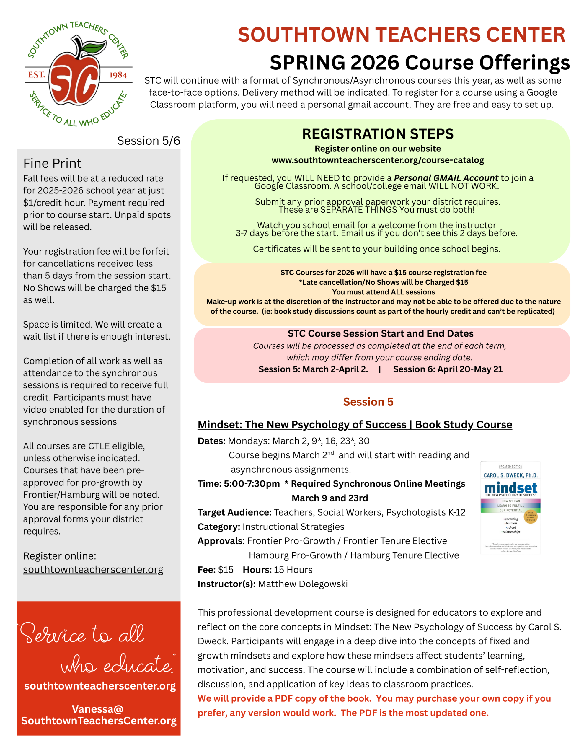 Questions? Call 649-6775 or email Vanessa@SouthtownTeachersCenter.org